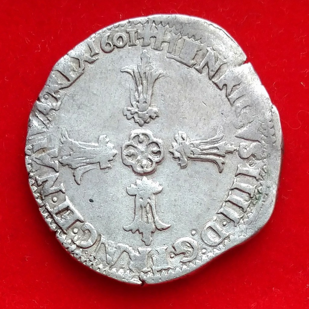 - Huitième d’écu à la croix feuillue, 1601, Angers.