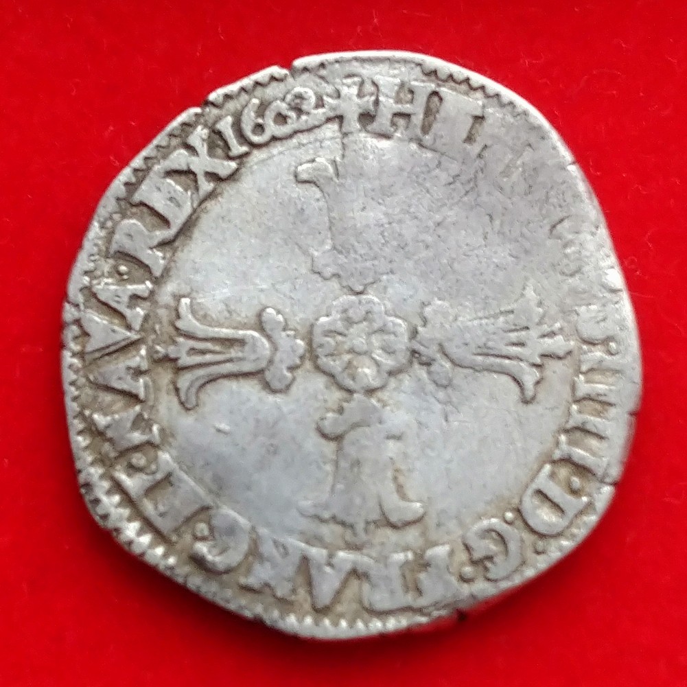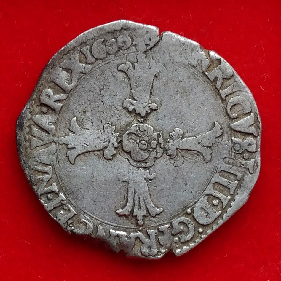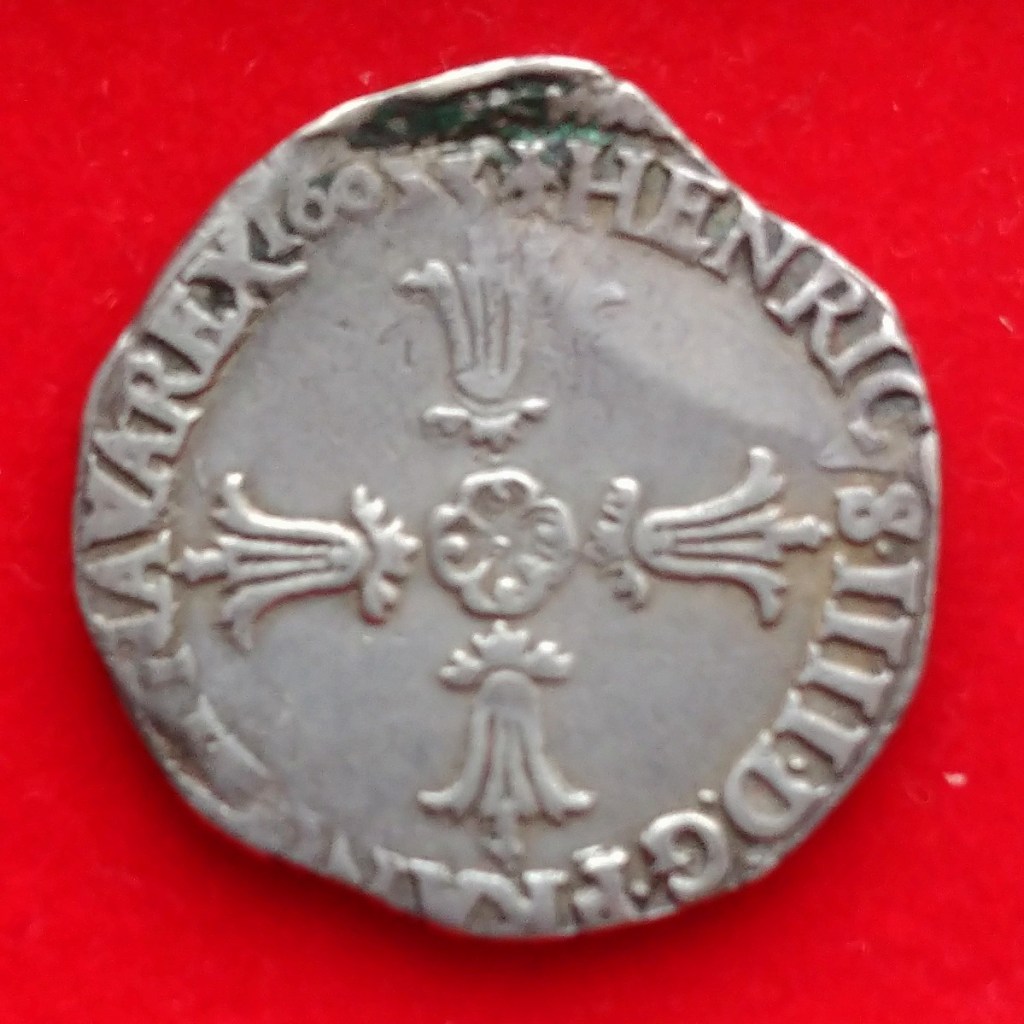 - Huitième d’écu à la croix feuillue, 1602, Angers.