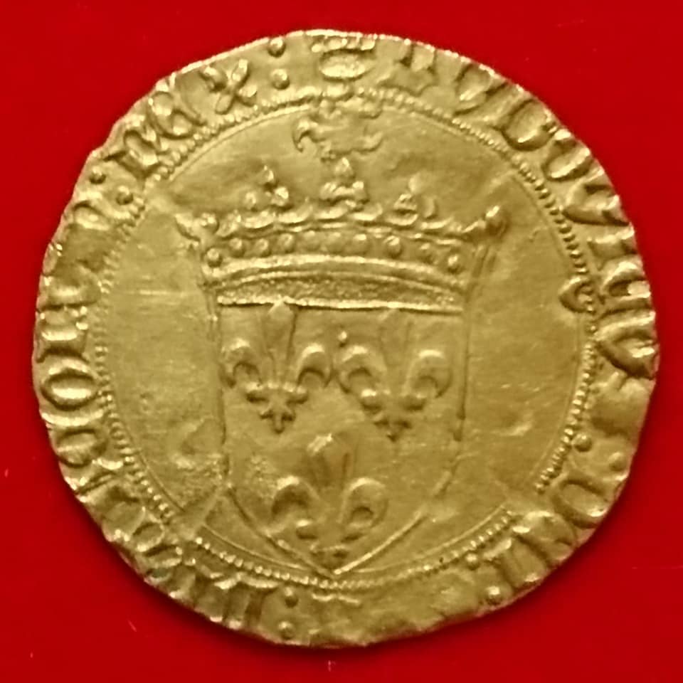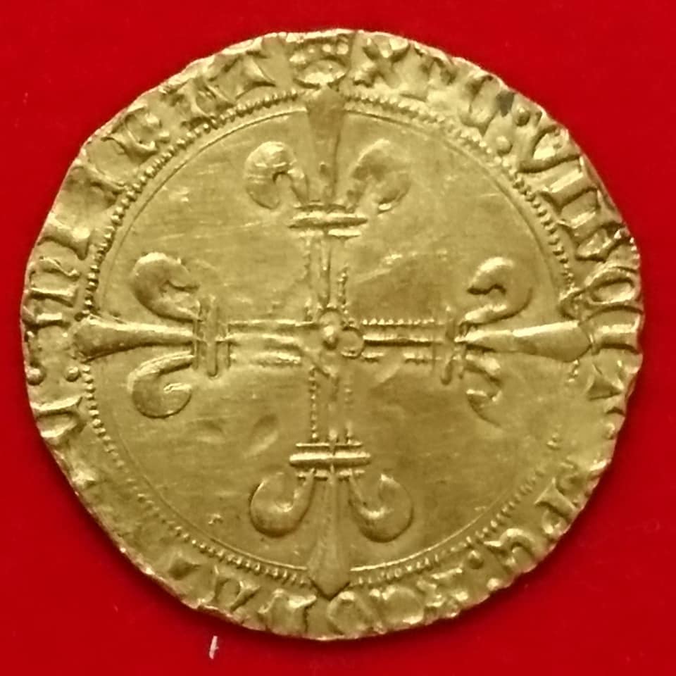 - Blanc à la couronne, variété avec STI au revers et point secret avec un trèfle, 1461, Angers.