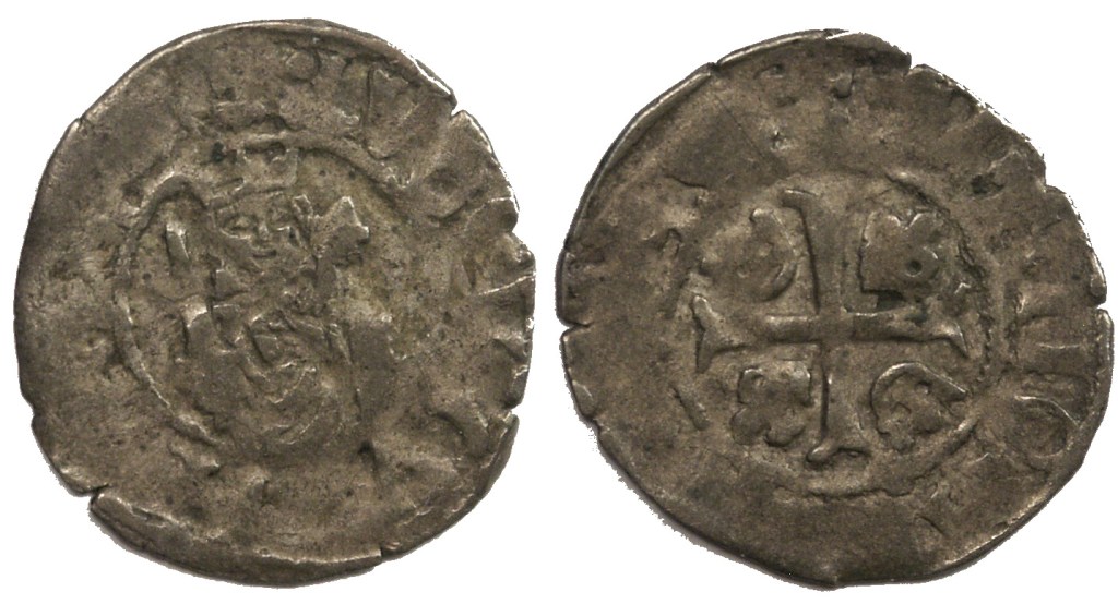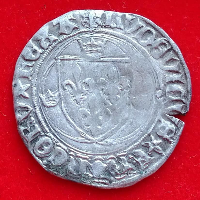 - Blanc à la couronne, variété aux couronnelles renversées, 1498, différent A du maître Jehan de Landevy en fin de légende de l’avers, Angers.