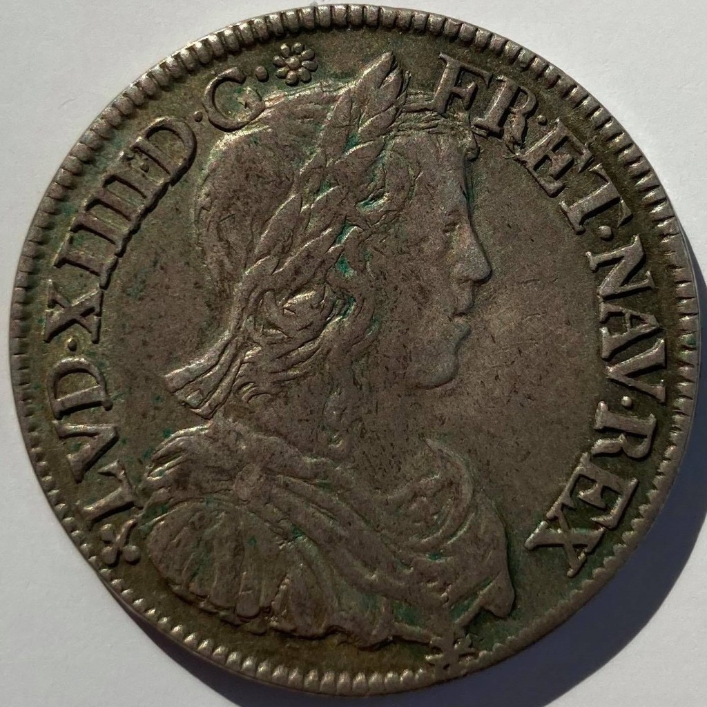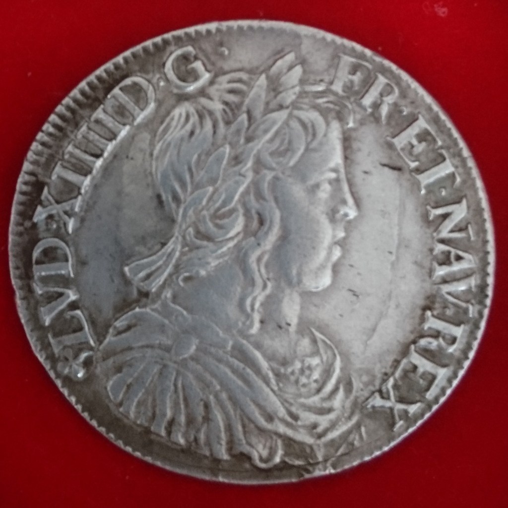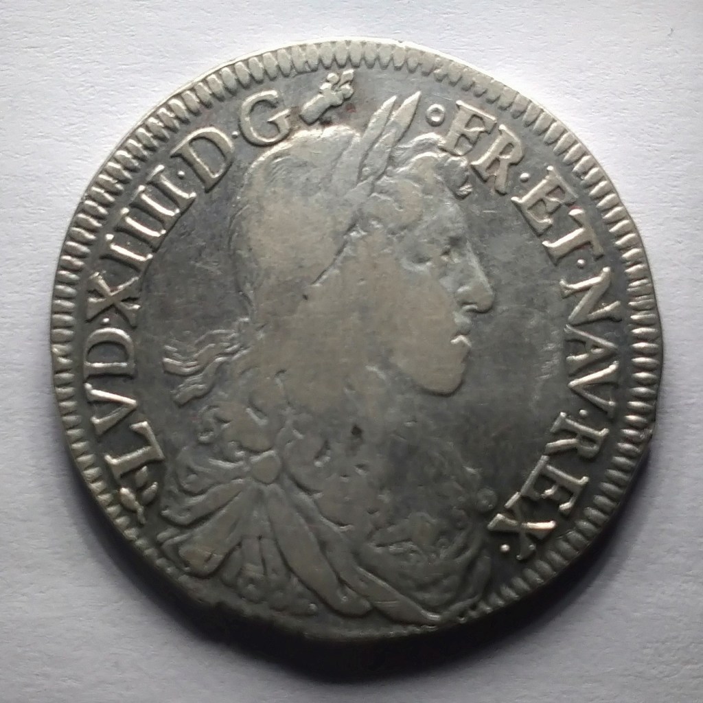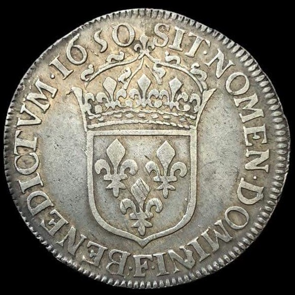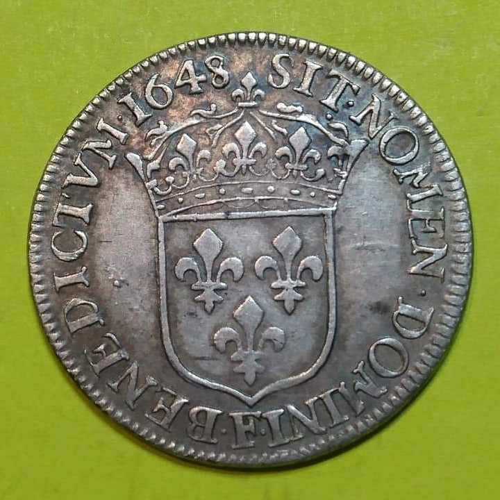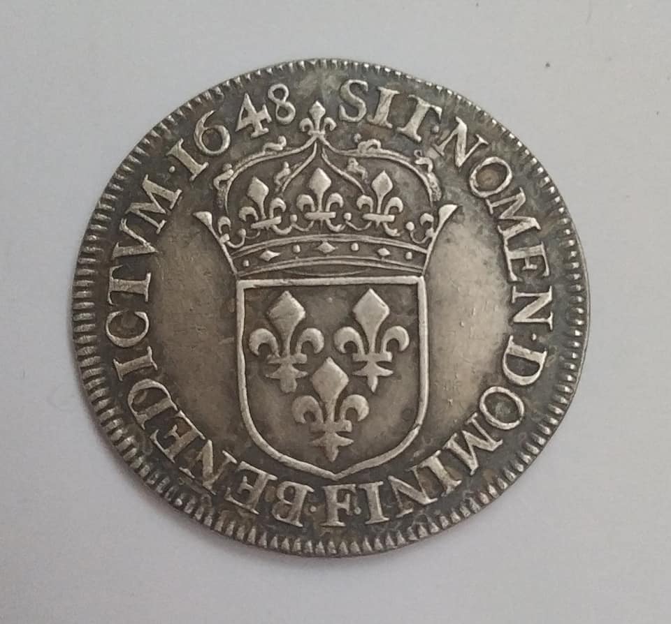 - Quart d’écu à la mèche longue, 1648, Angers.