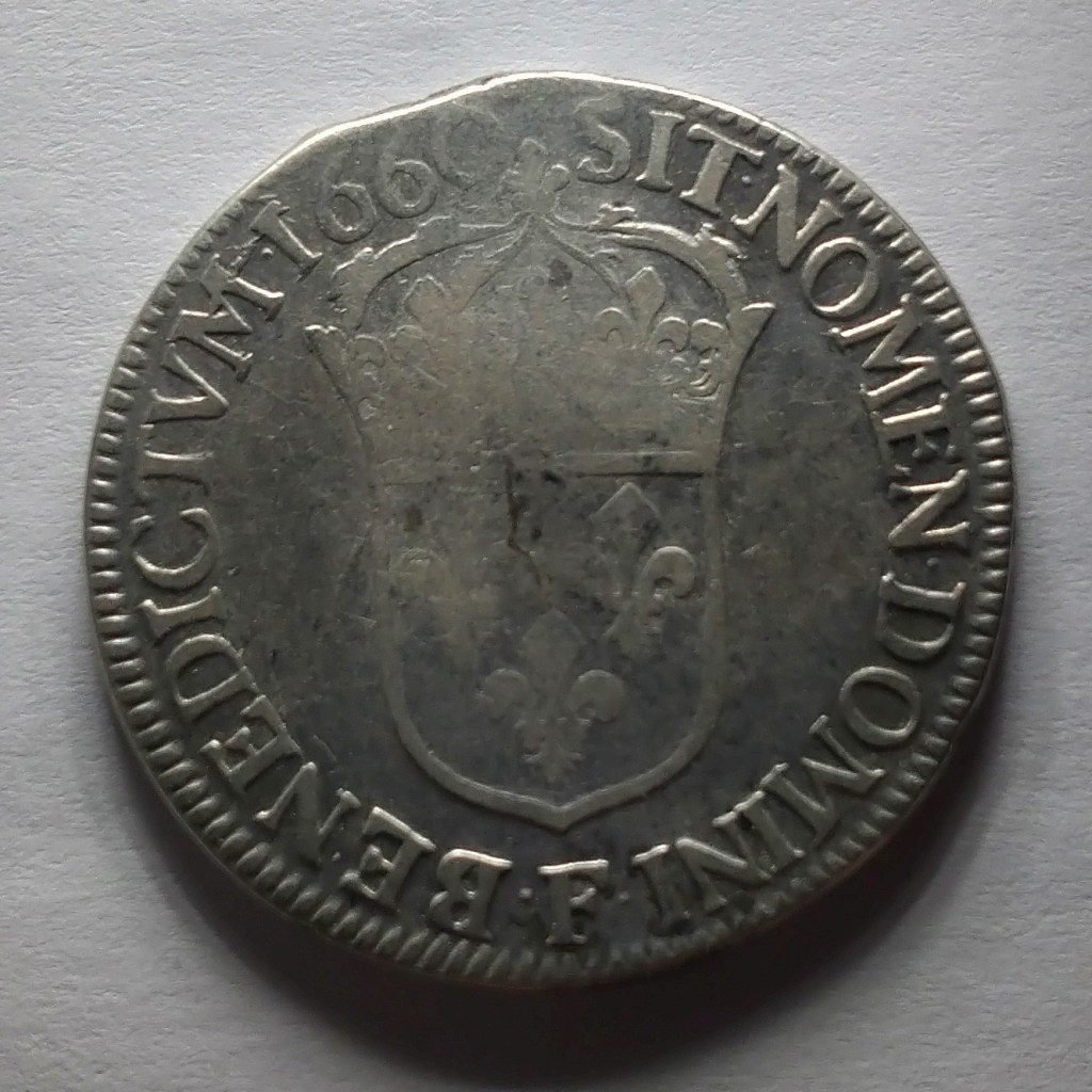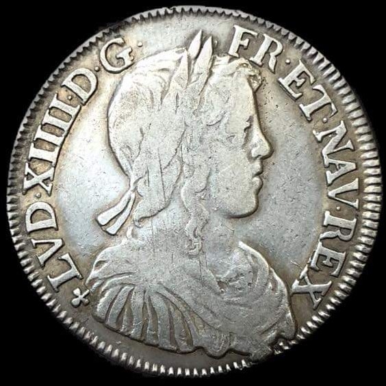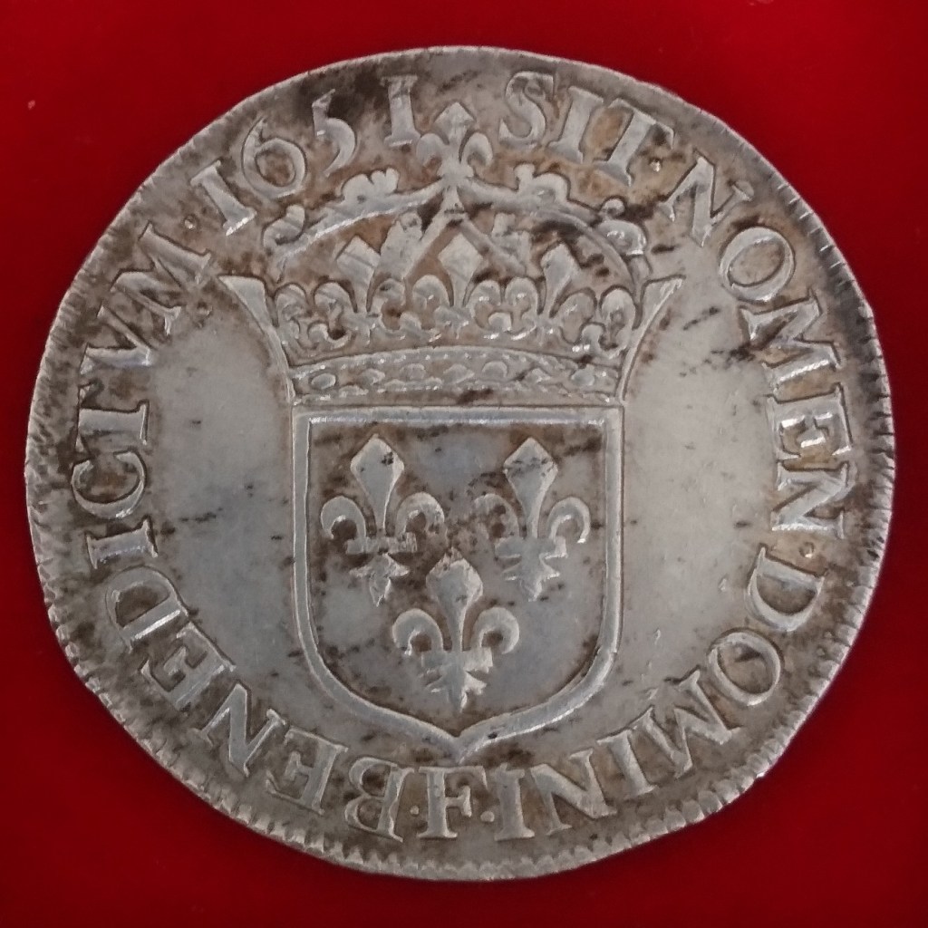 - Demi-écu à la mèche longue, 1651, différent rosette, Angers.