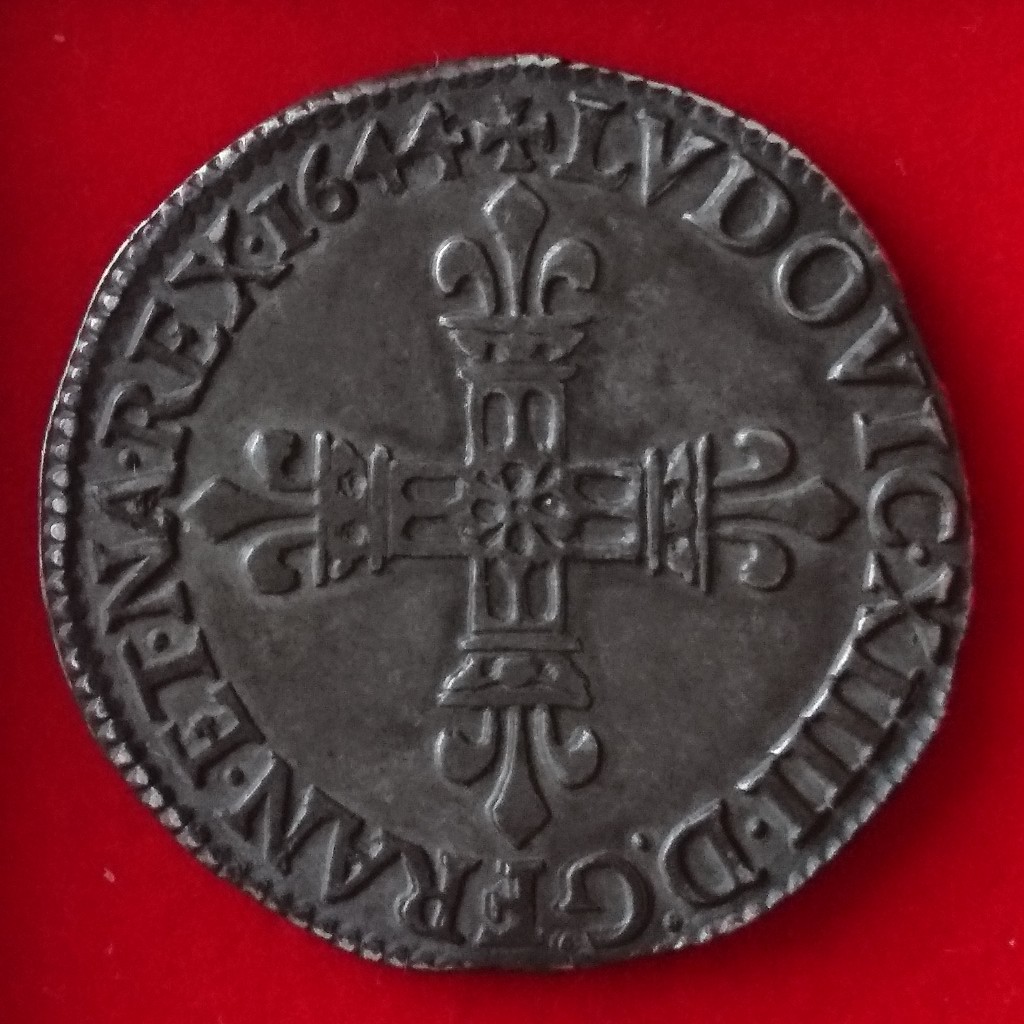 - Quart d’écu croix de face, 1644, différent larme, Angers.