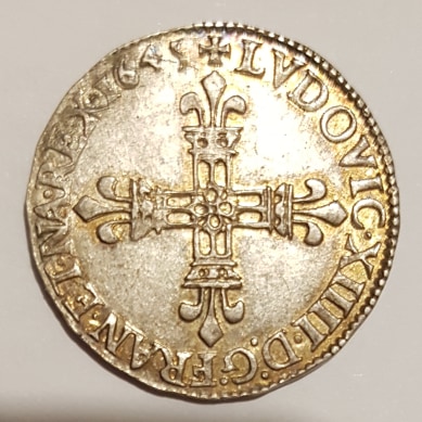 - Quart d’écu croix de face, 1643, différent larme, Angers.